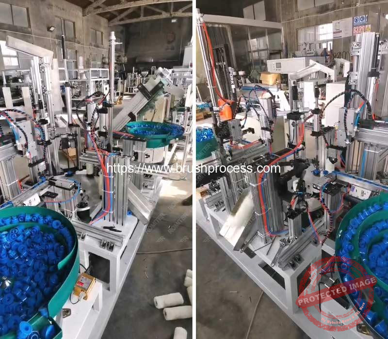 Working Video of Automatic Paint Roller Double Side Cap Inserting Assembling Machine