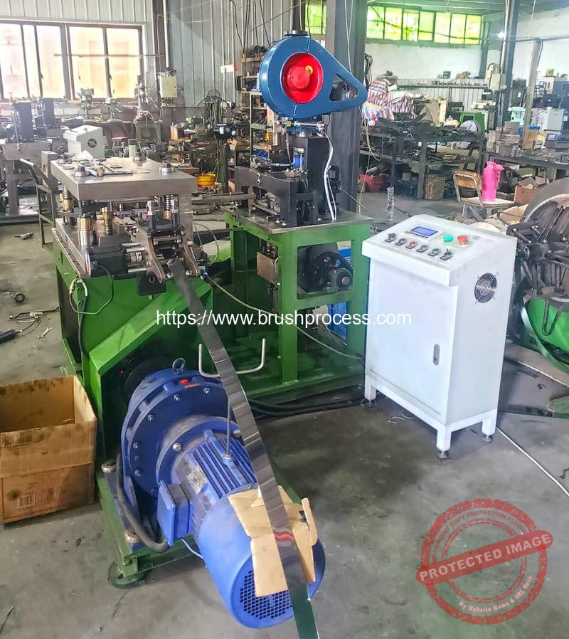 Mechanical Type Paint Brush Metal Ferrule Making Machine is used to make paint brush metal ferrule with the cam press for steel belt punching cutting which do not need punching machine. Full Automatic Brush Metal Ferrule Machine has the advanced feature of low noise and stable working than previous punching type paint brush metal ferrule making machine. To use the brush ferrule making machine, the steel belt will be fed into the machine and then passed through the dies, which cut and bend the shape to a brush ferrule. These machines are typically used in large-scale production settings, such as factories that manufacture paint brushes for commercial use. They help to automate the process of ferrule making and increase production efficiency.